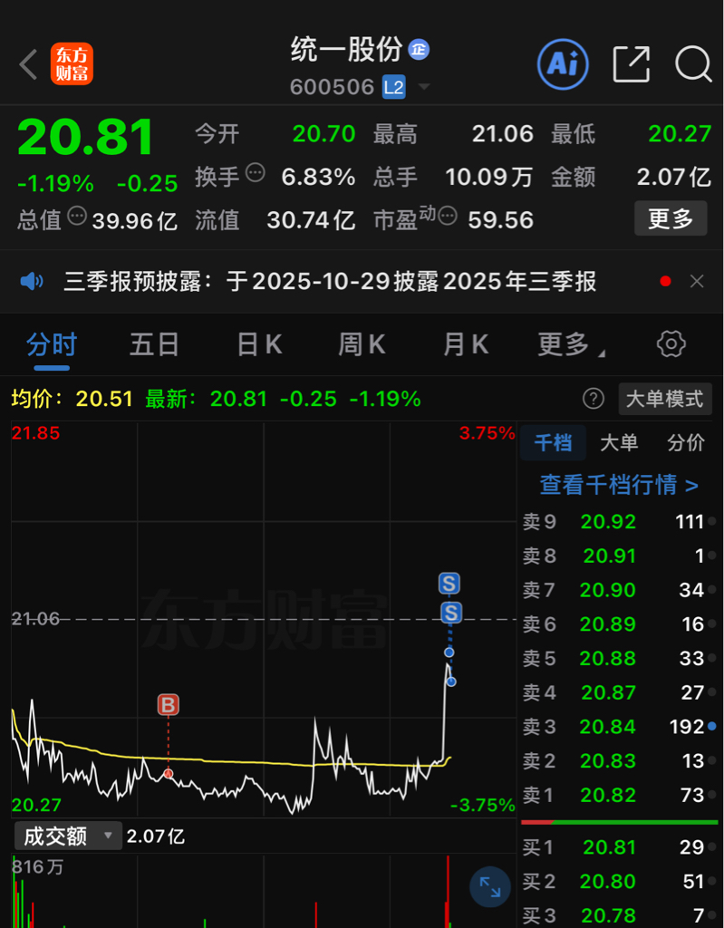 $统一股份(SH600506)$ 做了个T,盒饭钱到手了!