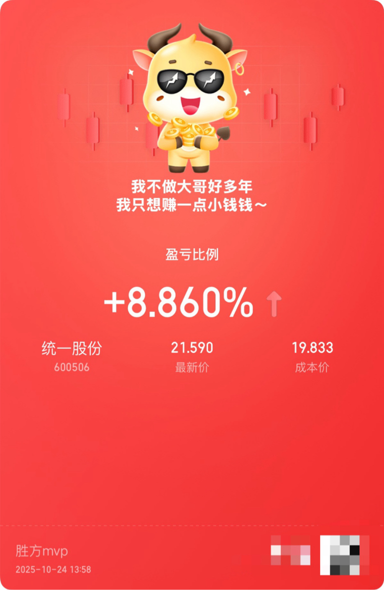 $统一股份(SH600506)$ 洗的掉我吗