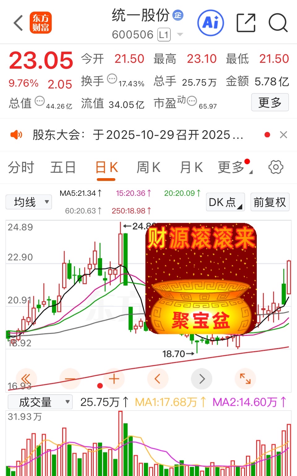 $统一股份(SH600506)$ 这不是聚宝盆形态吗,叠加芯片半导体题材,又是谐音梗。