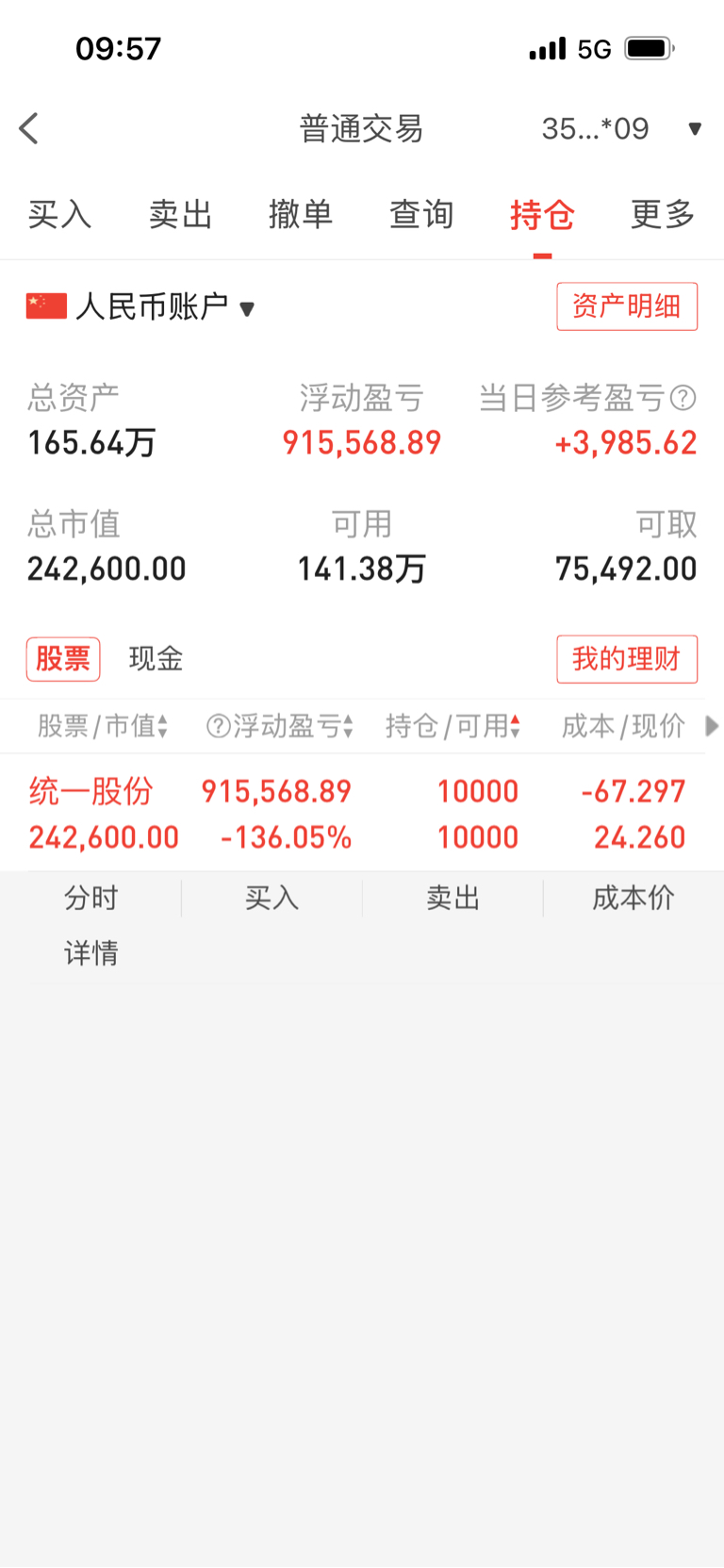 $统一股份(SH600506)$ 我就就这一点,你能割死我吗?太不争气