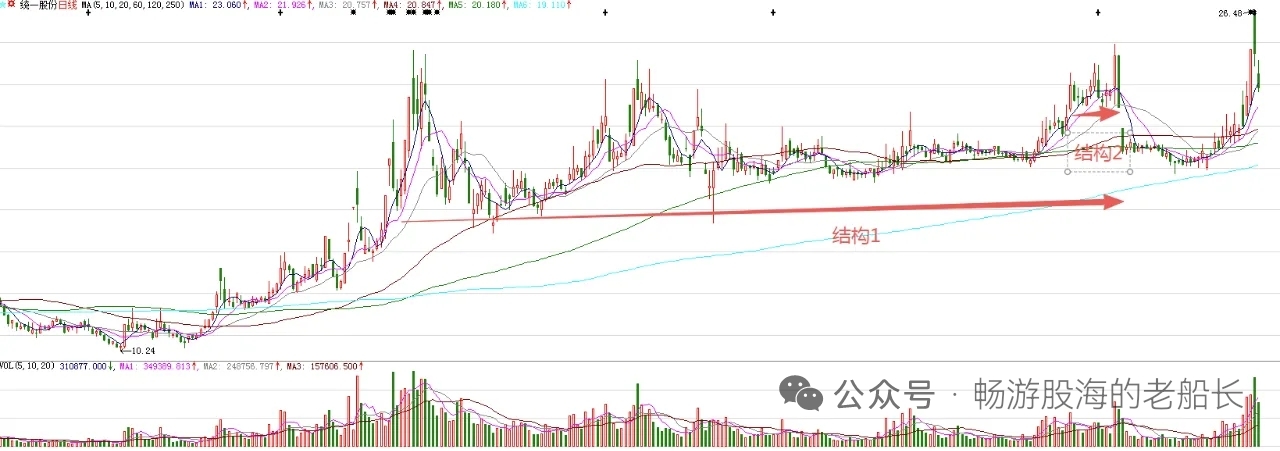 今天调整,基本符合预期。短线来看,周五还有惯性下探。周期面来看,本轮上涨,到本周二为止,走了十个有效上涨周期,到了变盘节点,所以,调整的目标位在十日均线上方。明天,大概率就调整到位了。图中标注的两个结构突破,意味着股价处在比较大的上涨趋势,后期有波段上涨。目前,股价处在波段上涨中。短暂调整后,还会继续波段上涨。