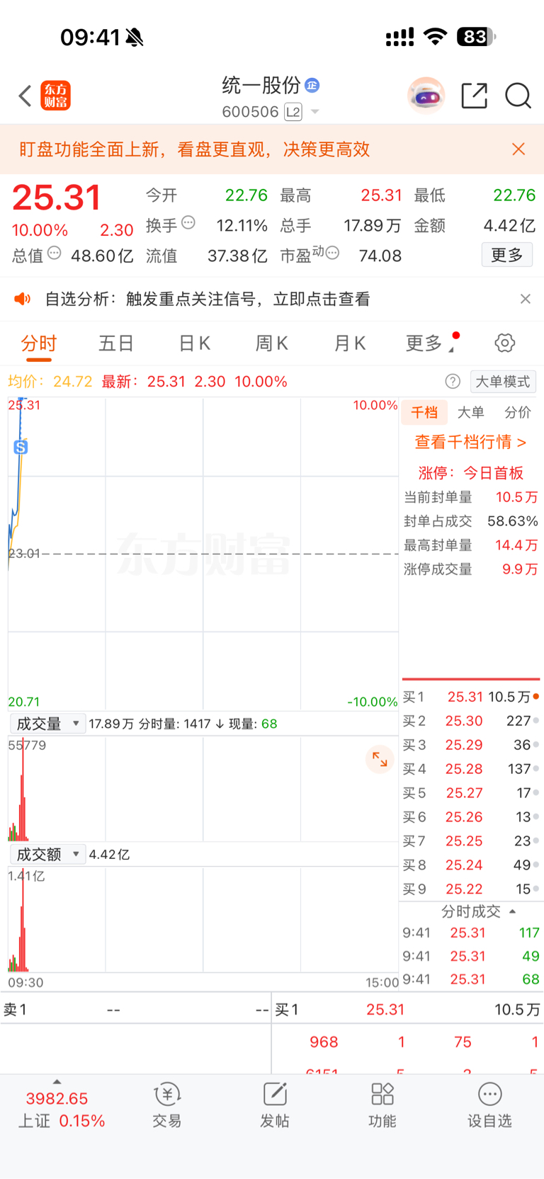 $统一股份(SH600506)$ 挂的隔夜单忘记撤了