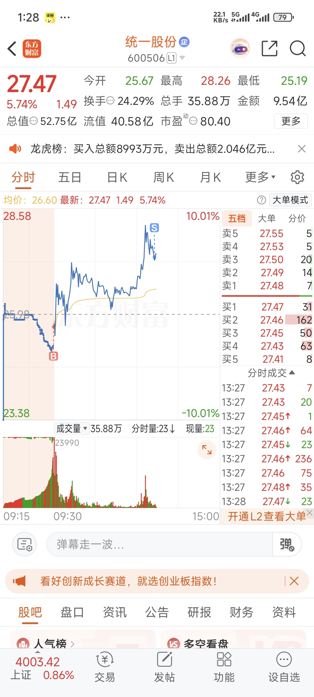 $统一股份(SH600506)$ 走了,我已经够格局了,顶第一波下跌没走,