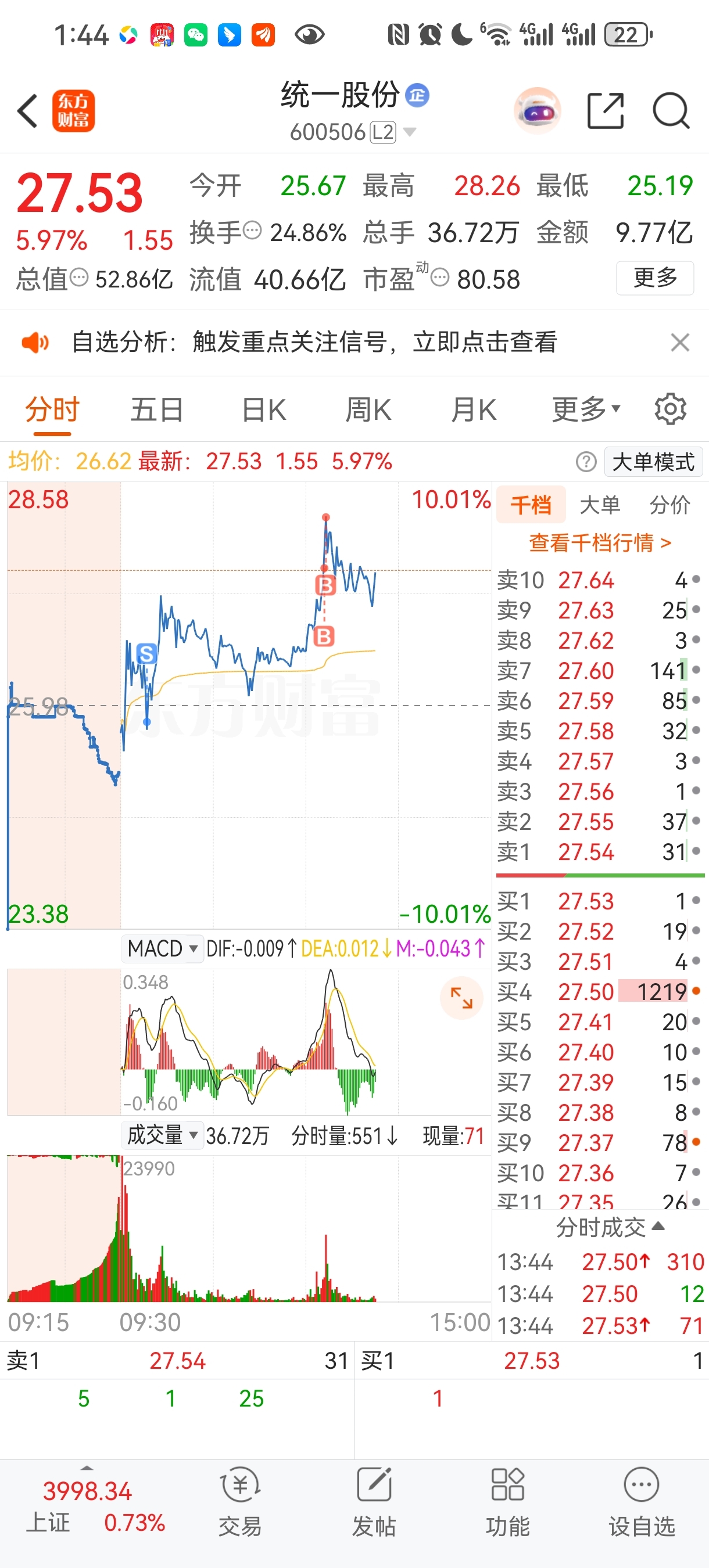 $统一股份(SH600506)$ 水下割肉,山顶接接货,全仓猛干,sb战法