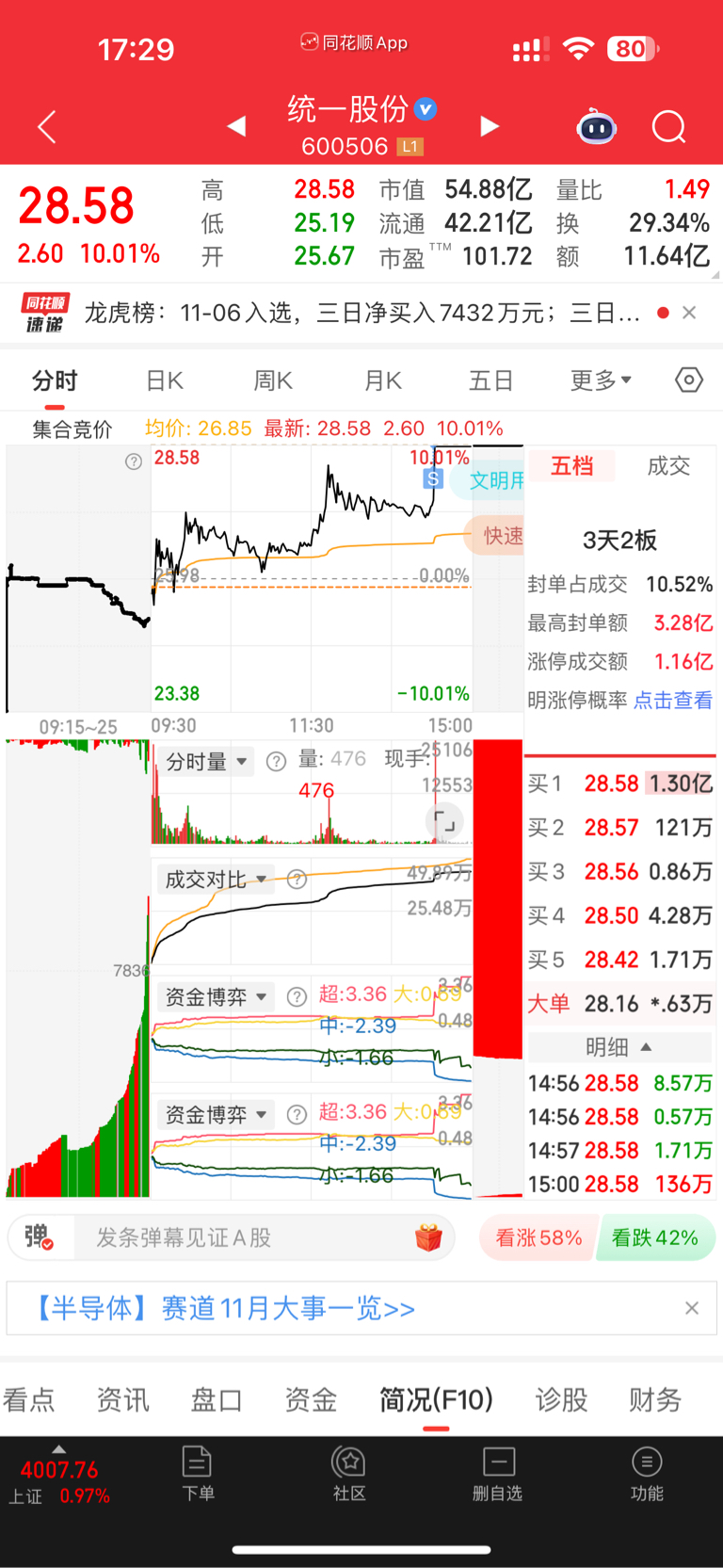 $统一股份(SH600506)$ 明天高开低走了,肯定断板
