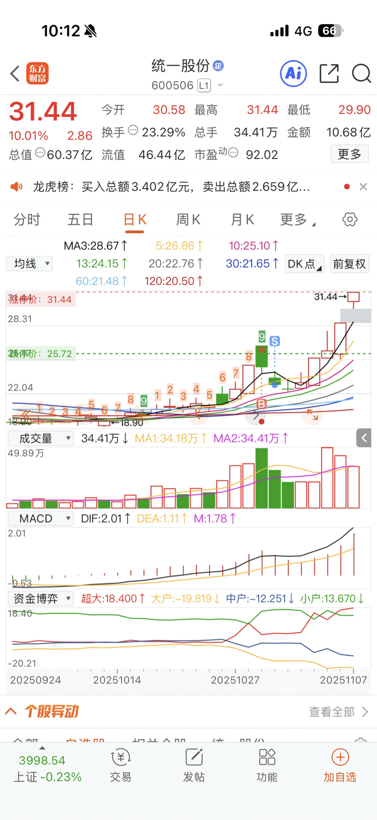 $统一股份(SH600506)$ 真是个韭菜啊