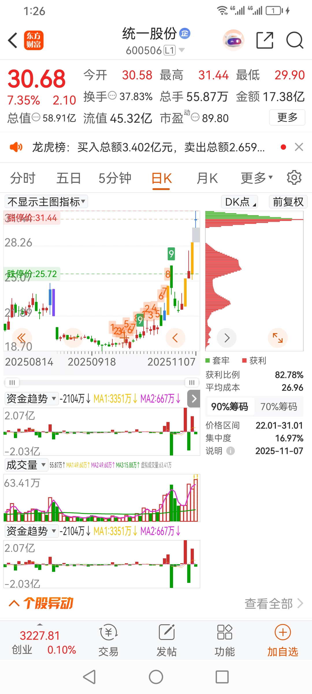 军工情绪高潮期3板,坚决卖出一半,统一股份600506。
