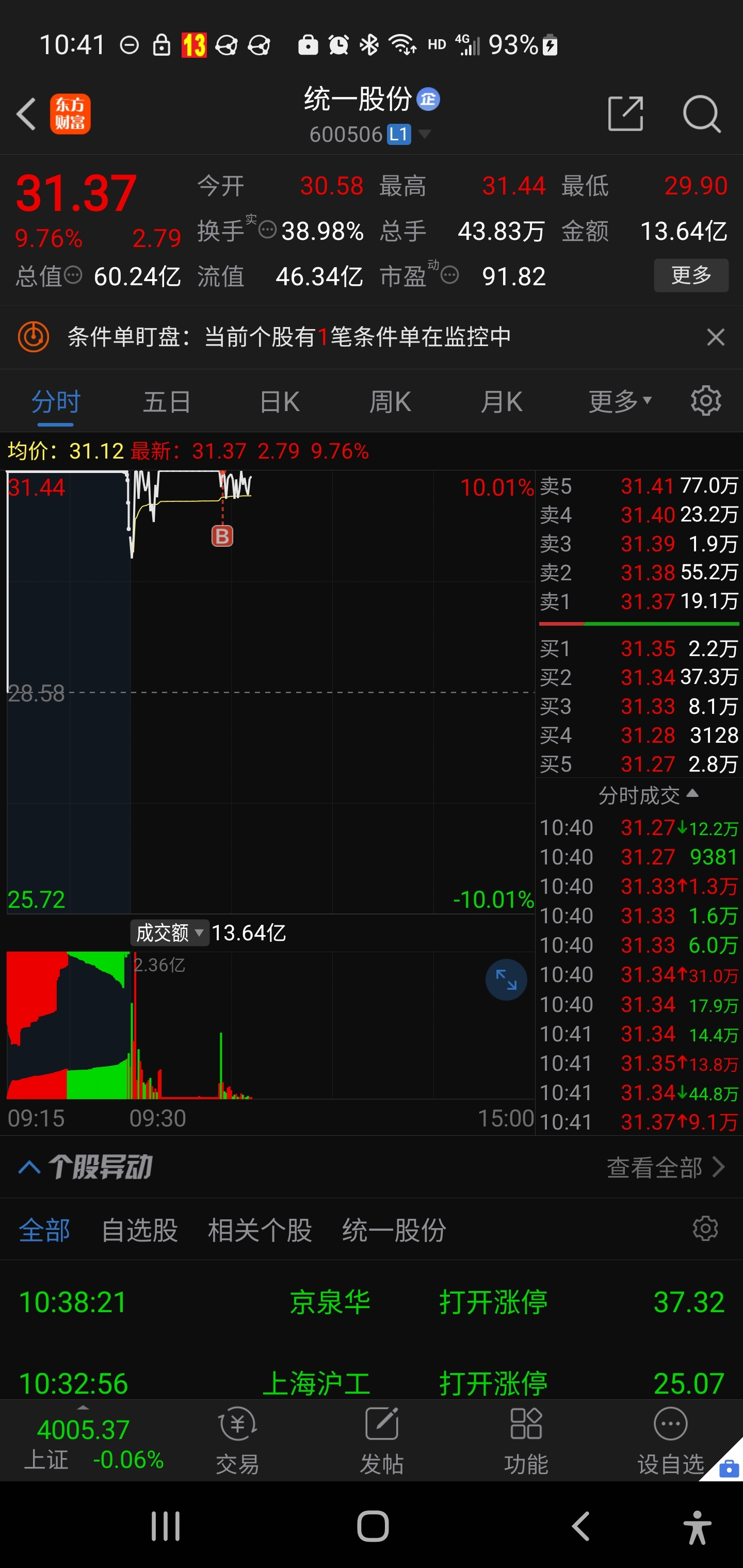 $统一股份(SH600506)$ 合力封板