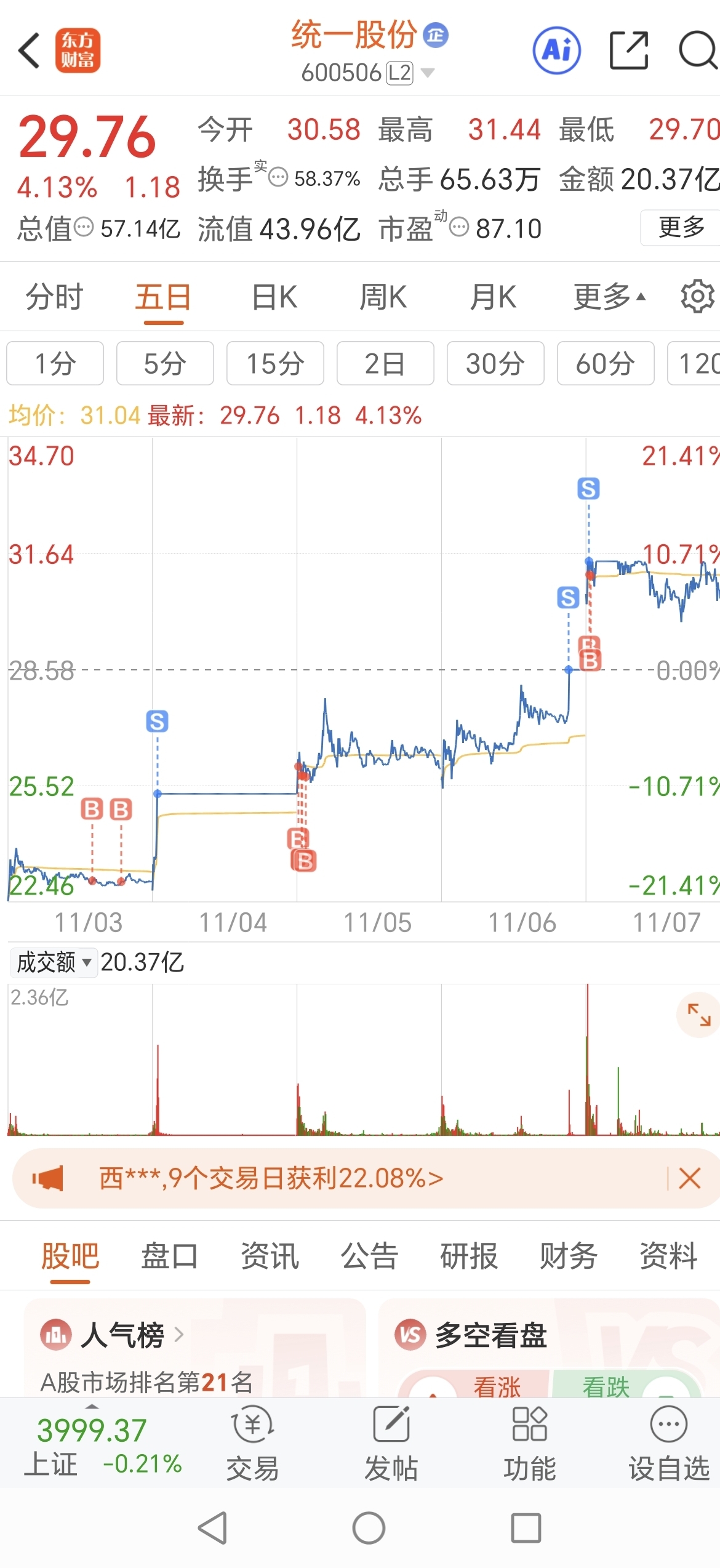 $统一股份(SH600506)$ 统一势不可挡,下周再战