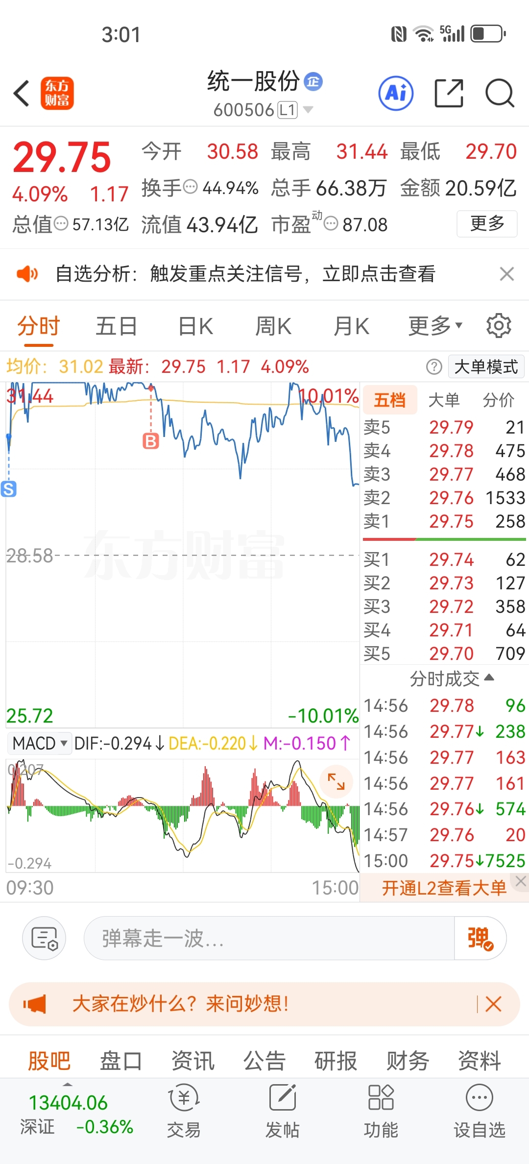 $统一股份(SH600506)$ 心态爆炸。。。