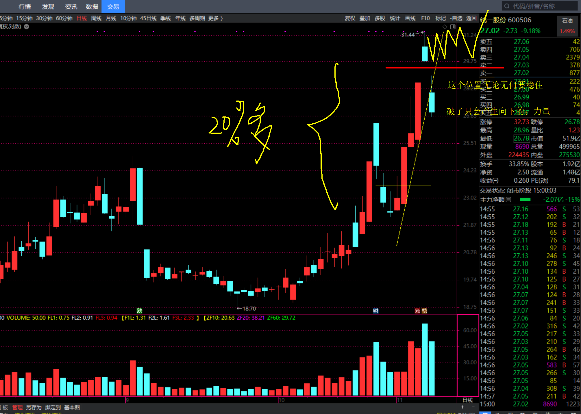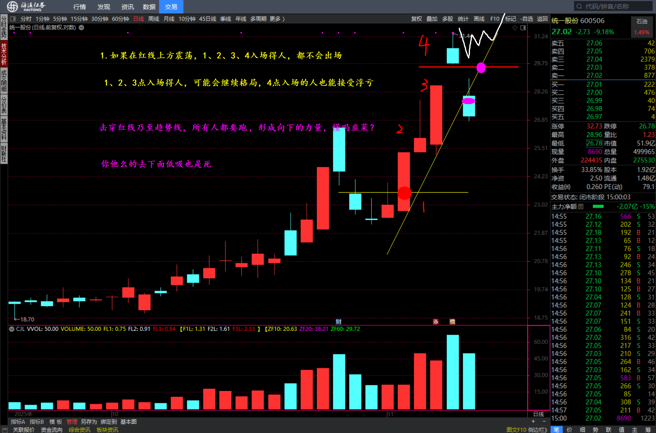 作为跟势交易者,破趋势线必须走; 疯韭都在拼命跑,不跑不被淹没了。