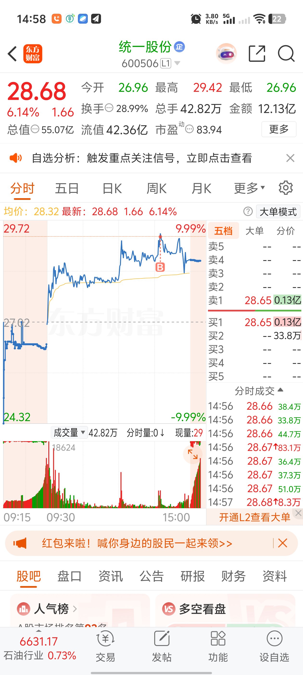$统一股份(SH600506)$ 让爷把这钱快些输完,。一天早不砸晚不砸,你不进去它不砸,。。
