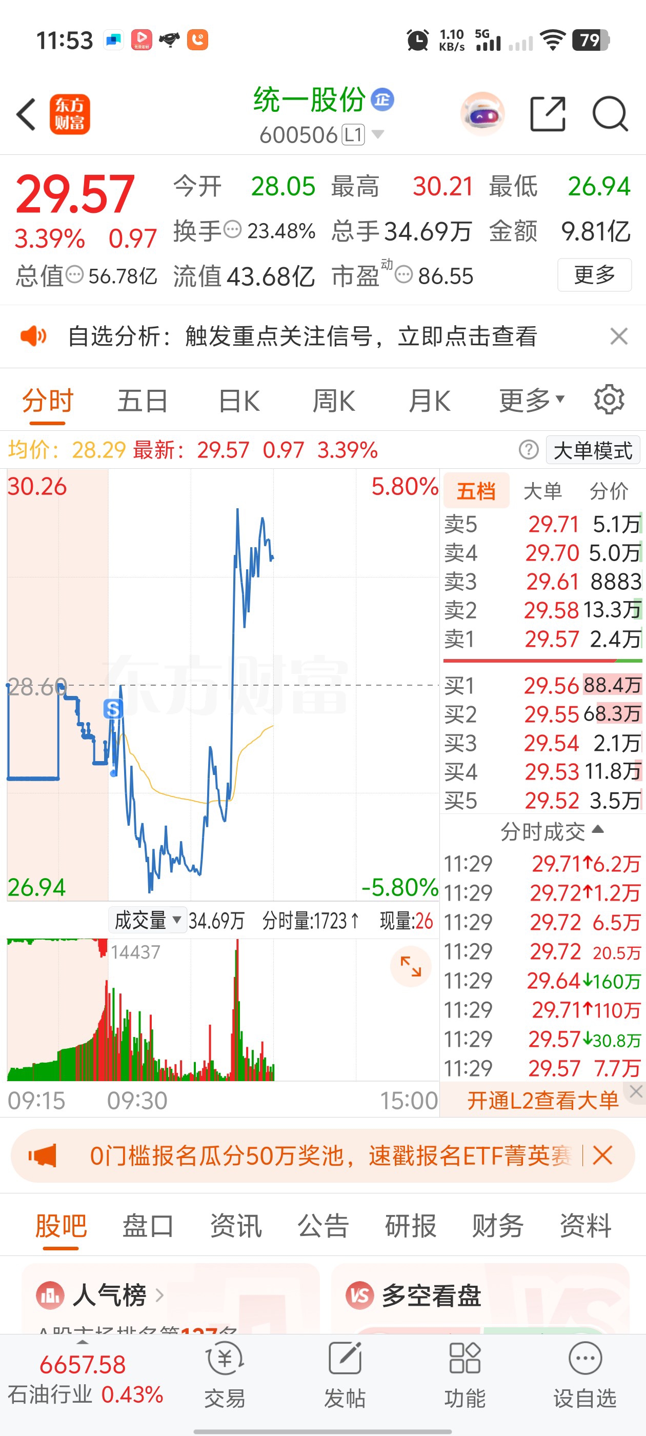 $统一股份(SH600506)$ 有谁教教我抄股,,真的输放了,卖了去追高现在两头埃打,,