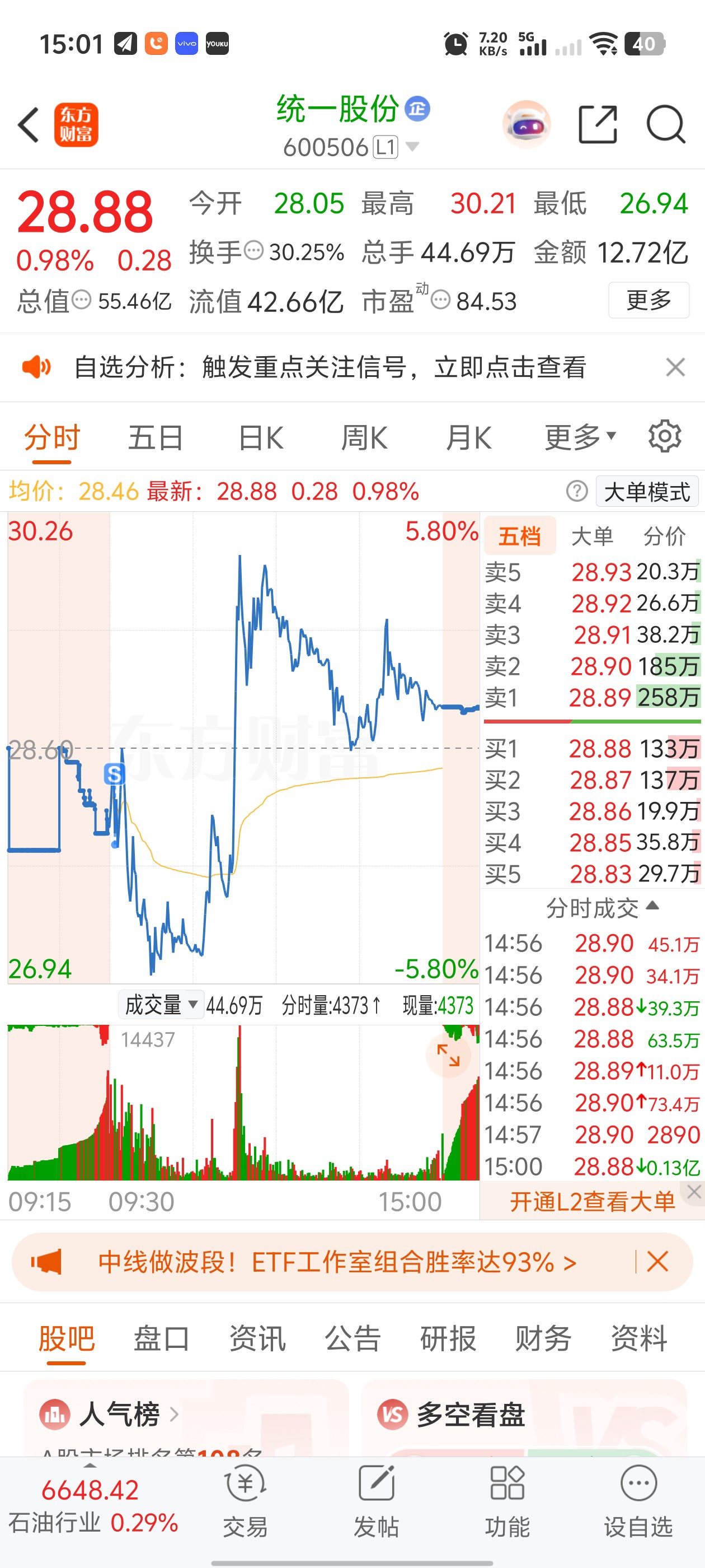 $统一股份(SH600506)$ 想拜师学技,上日红二天,这月展示,四十多就还能二万了