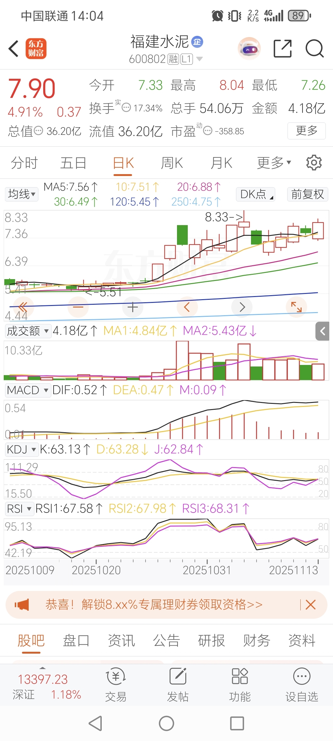 $统一股份(SH600506)$ 福建水泥的走势一样 明天跌