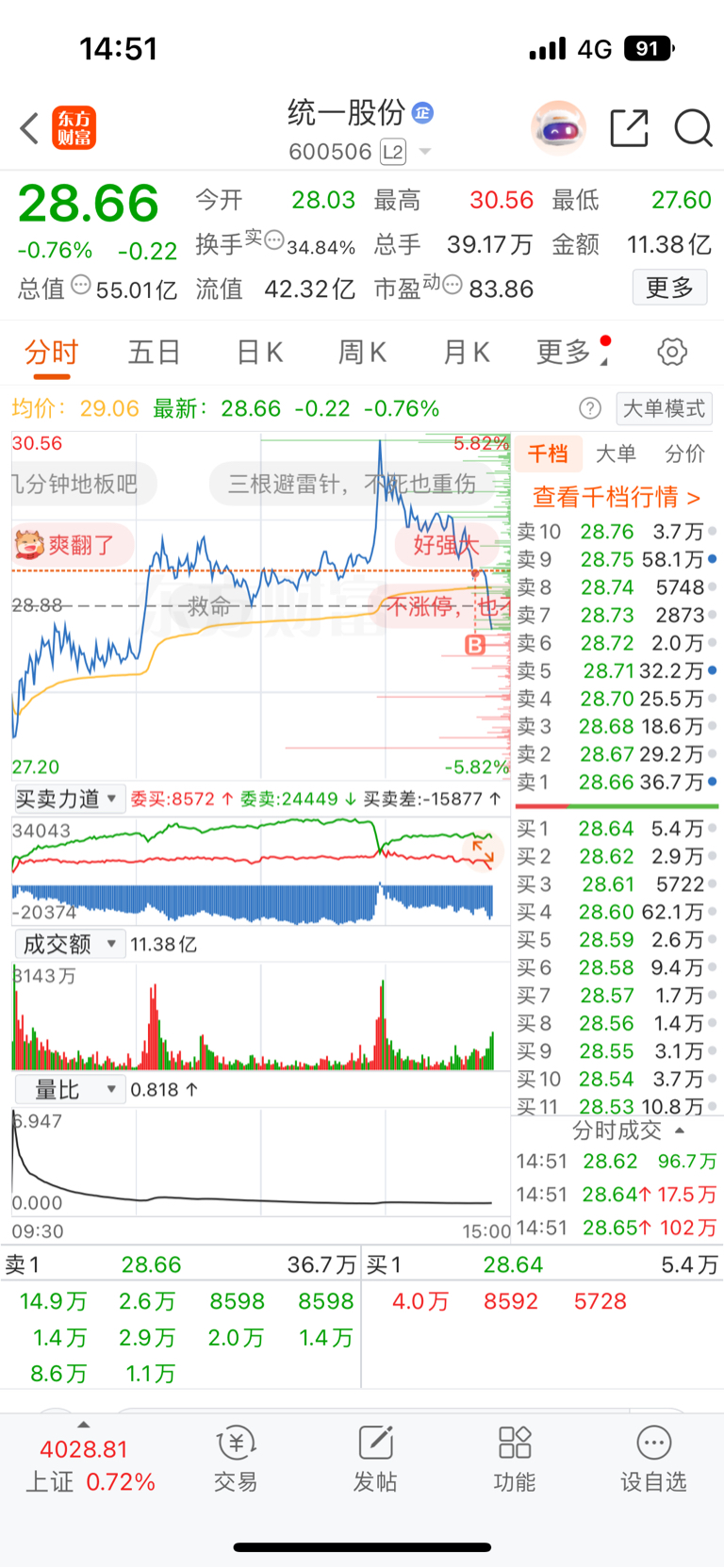 $统一股份(SH600506)$ 对不起大家,我承认是我把这票买蹦了