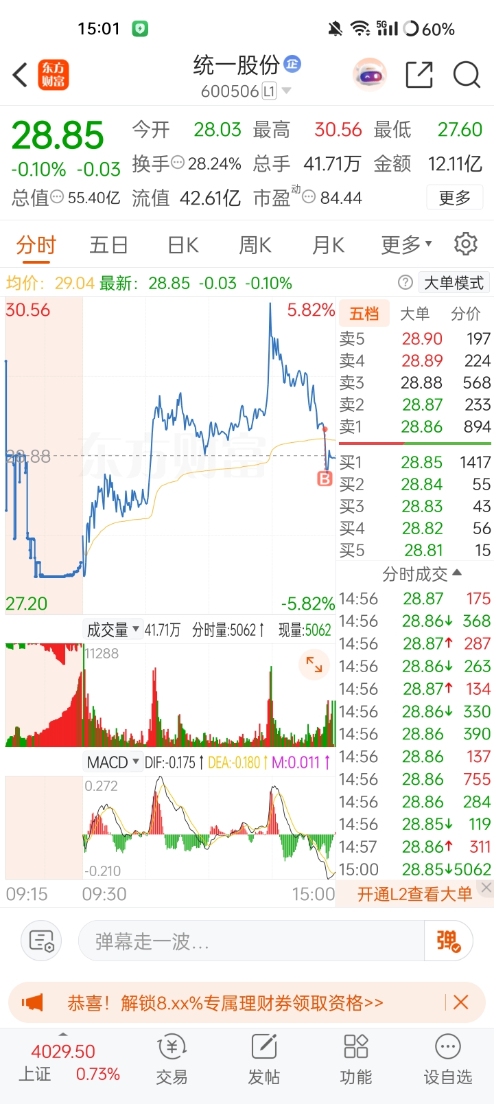 $统一股份(SH600506)$ 是我把你买崩了,就差我这三瓜俩枣的?