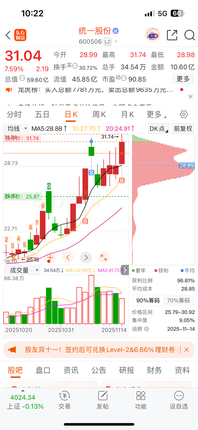 $统一股份(SH600506)$ 是的没错我又回来了