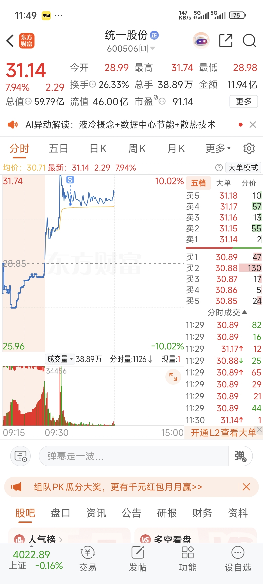$统一股份(SH600506)$ 卖飞了,里面人发财