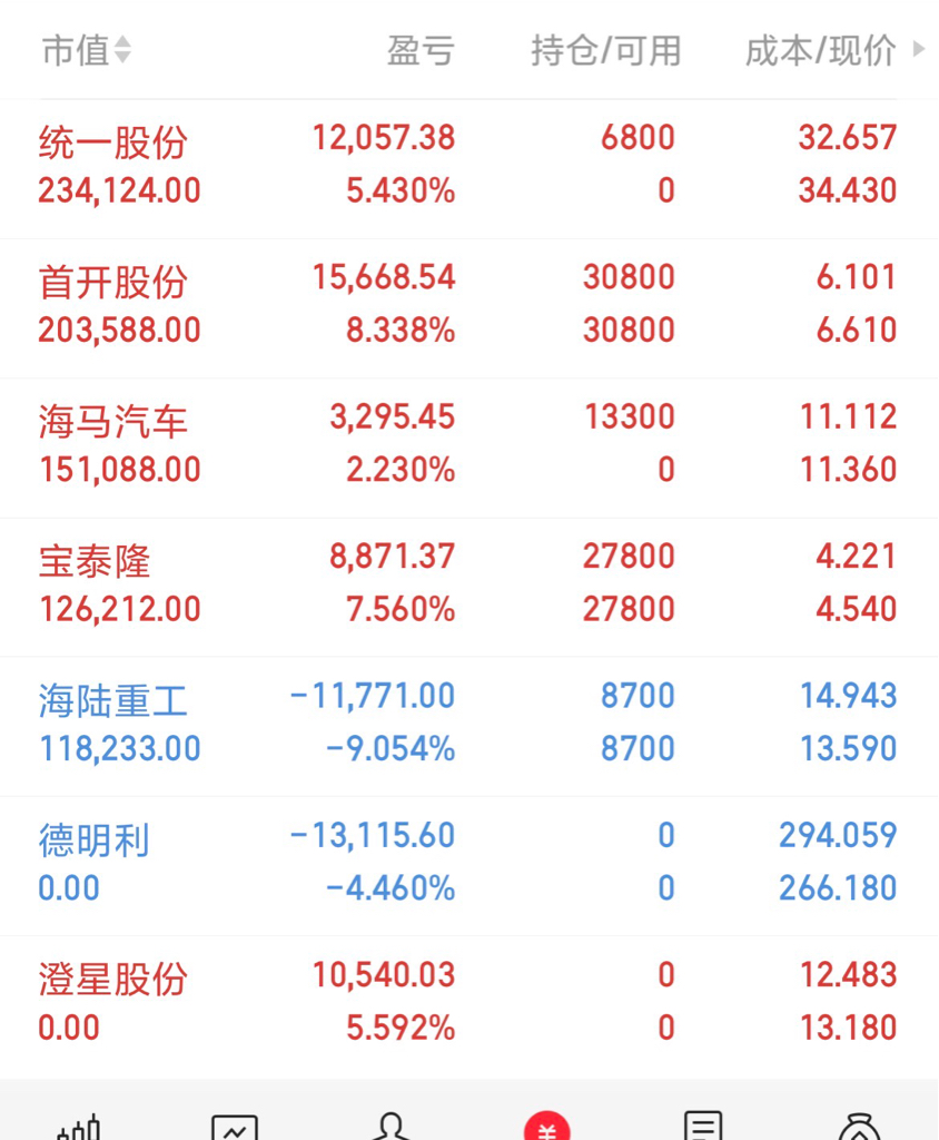 德明利止损出局澄星盈利5个点落袋为安目前持仓:宝泰隆和海陆重工