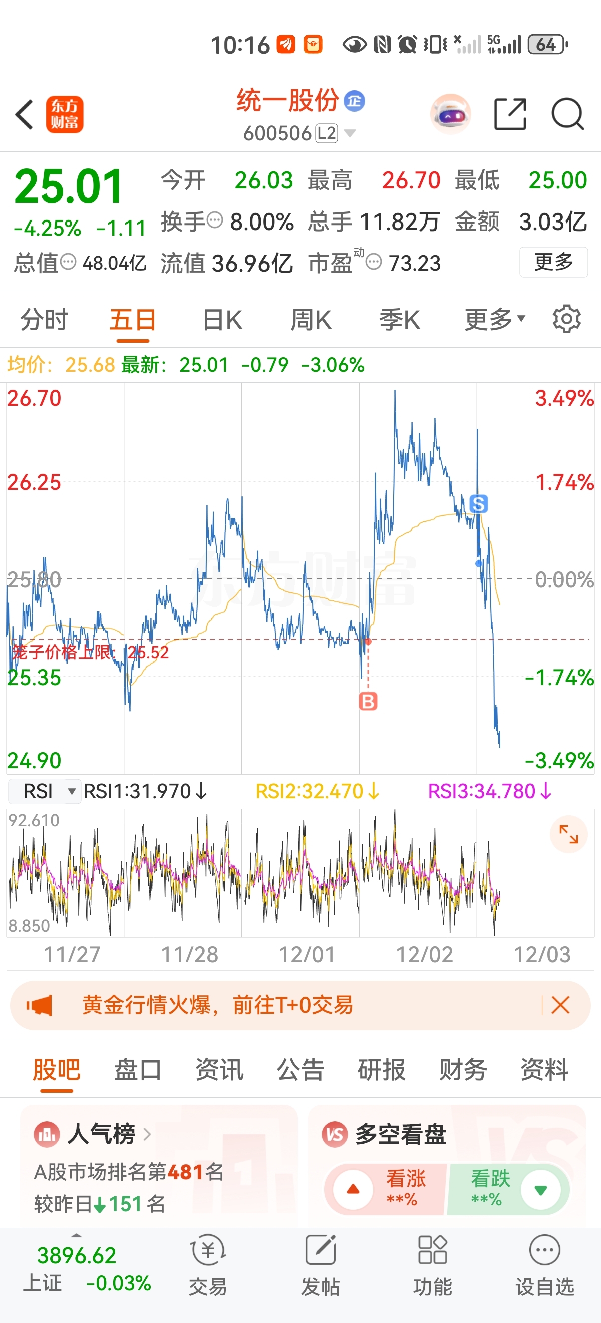 $统一股份(SH600506)$ 我老婆大学生,让我先跑