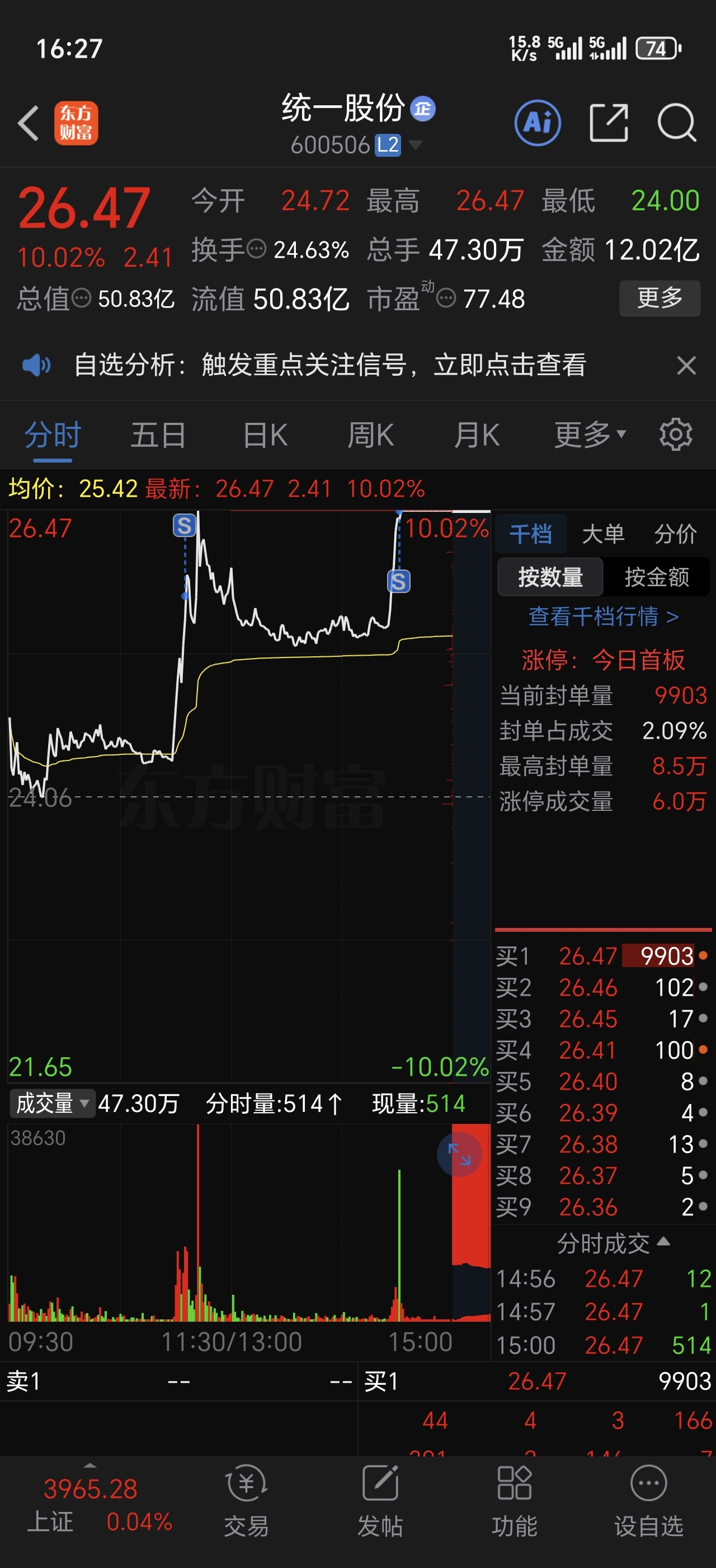 上午没有加仓,估计明天卖飞了