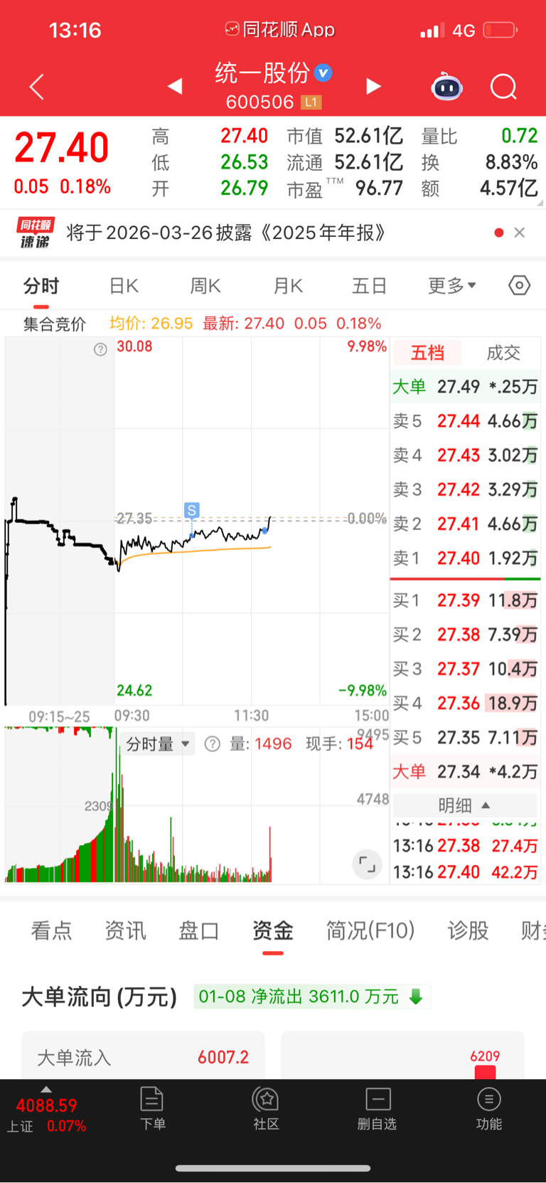 $统一股份(SH600506)$ 你是个子比撒吧?