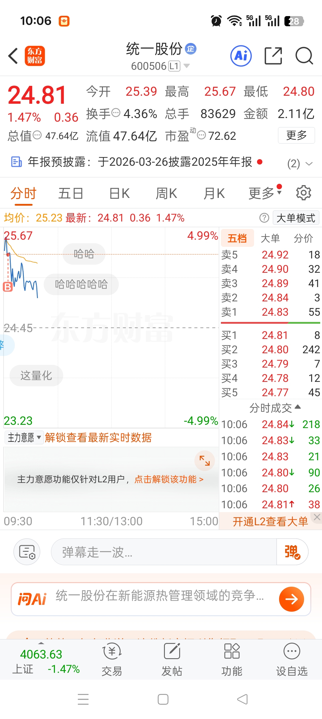 温馨提示: 1.根据《证券法》规定,禁止编造、传播虚假信息或者误导性信息,扰乱证券市场;2.用户在本社区发表的所有资料、言论等仅代表个人观点,与本网站立场无关,不对您构成任何投资建议。用户应基于自己的独立判断,自行决定证券投资并承担相应风险。《东方财富社区管理规定》