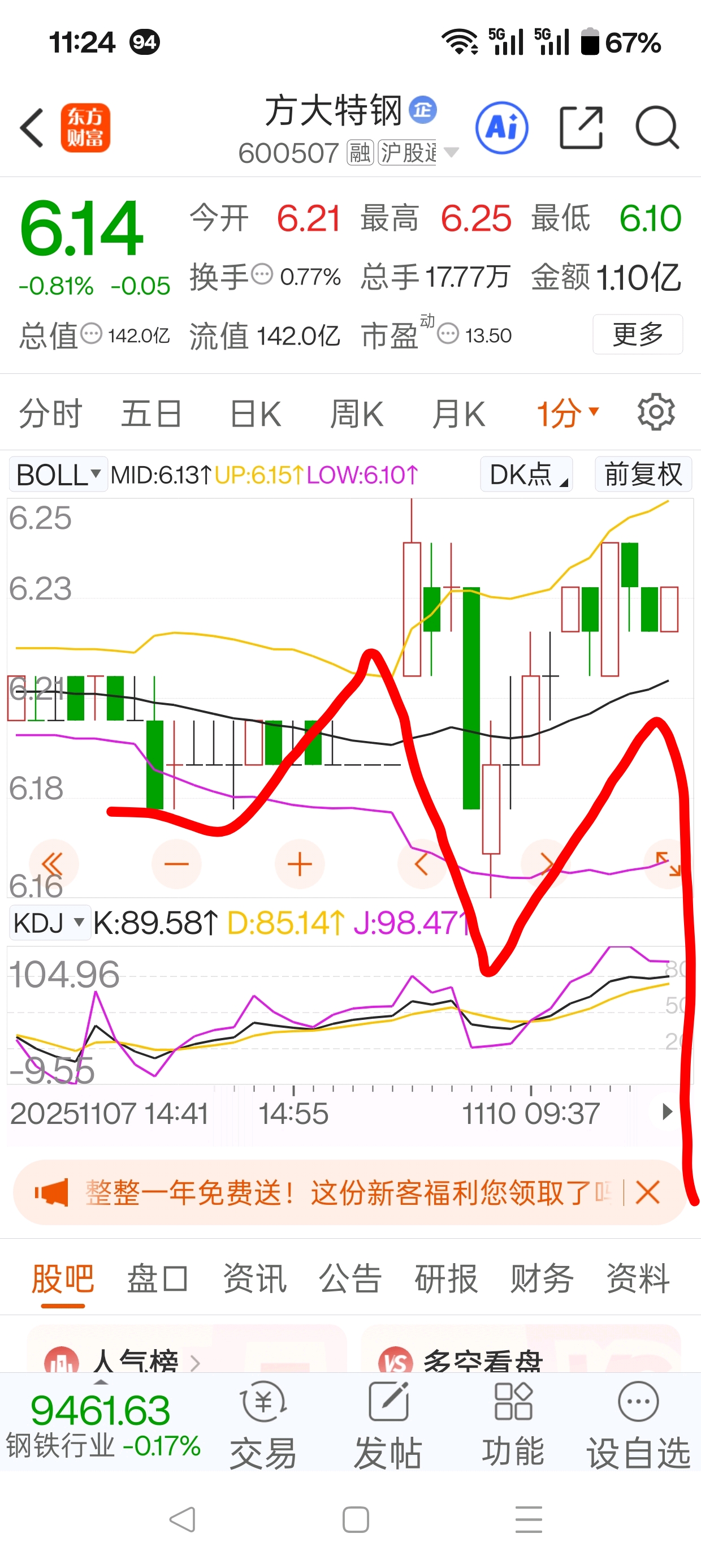 $方大特钢(SH600507)$ 看见深V就要卖出。