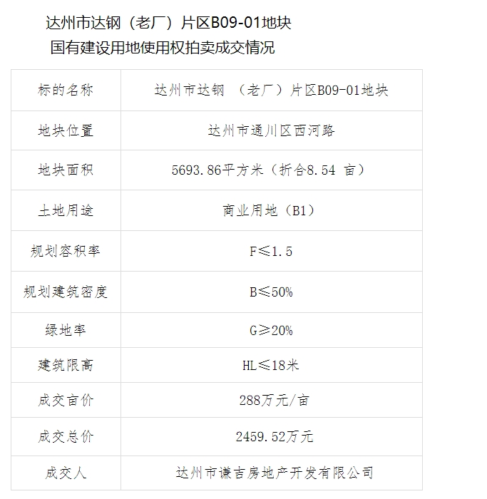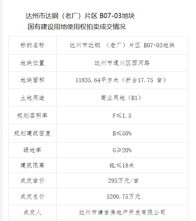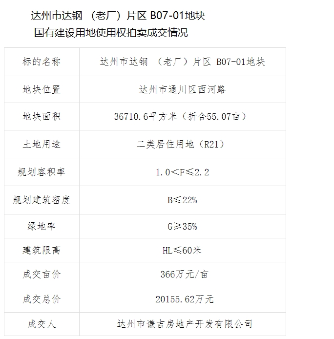 目前网址可查方大达钢地块共10块,已经成交7块,剩下3块带拍卖,已经成交金额超5亿!各位老战友,自己把握机会,自己考虑