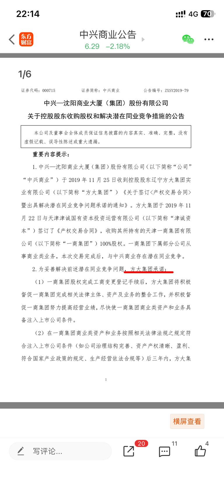 对比中兴商业,没有延期公告的原因可能是因为缺少“方大集团承诺”字样,不构成承诺主
