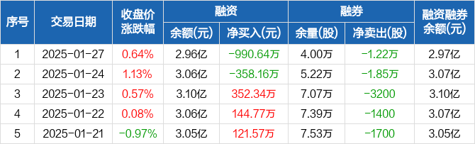 上海能源:融资净偿还990.64万元,融资余额2.96亿元(01-27)