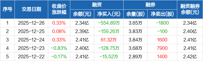 上海能源:融资净偿还554.89万元,融资余额2.34亿元(12-26)