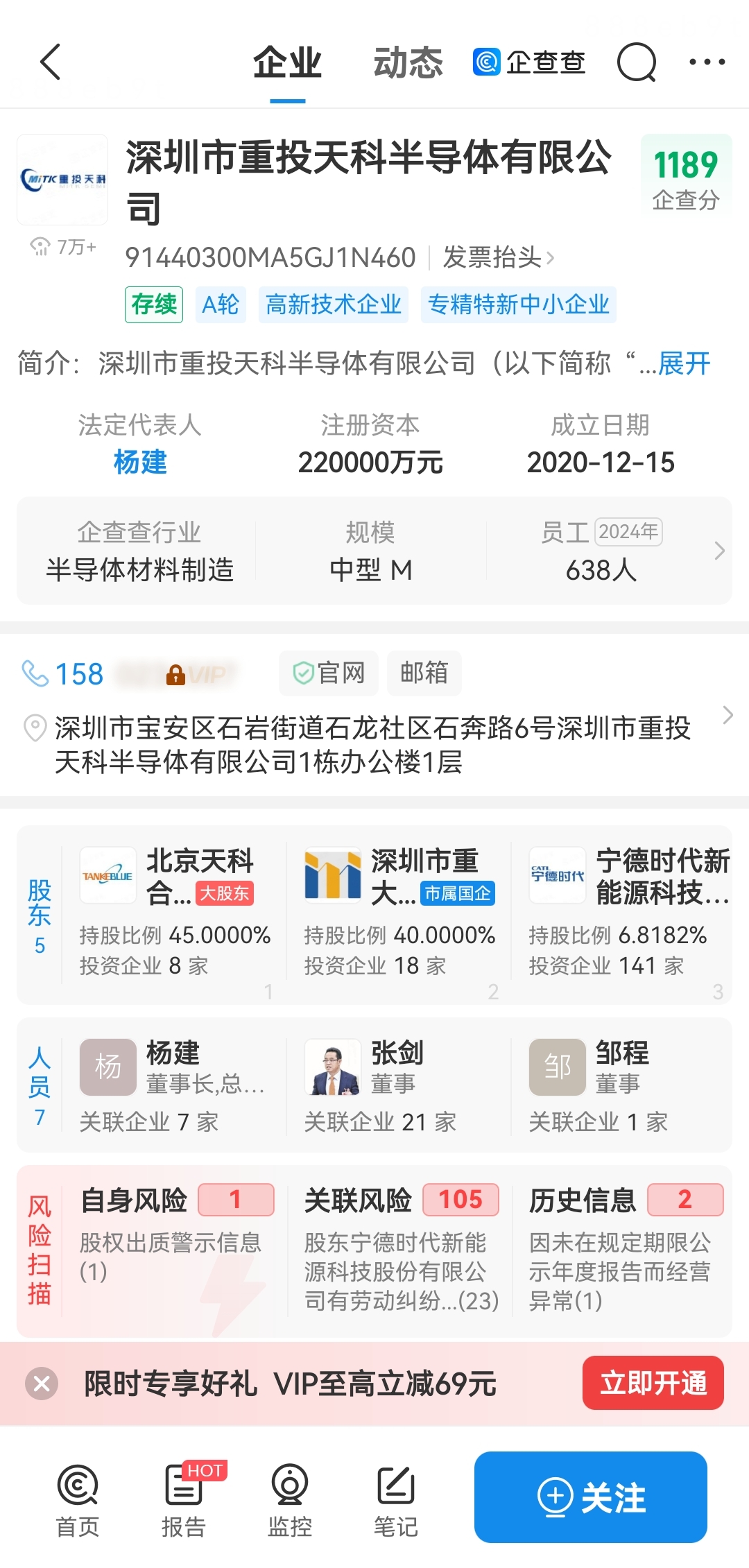 大家只关注新凯莱上下游供应商,没有留意到漏网的大牛。扒一扒这个公司“深圳市重投天科半导体有限公司”,由北京天科和新凯莱母公司合资组建。北京天科的控制大股东是天富能源600509。