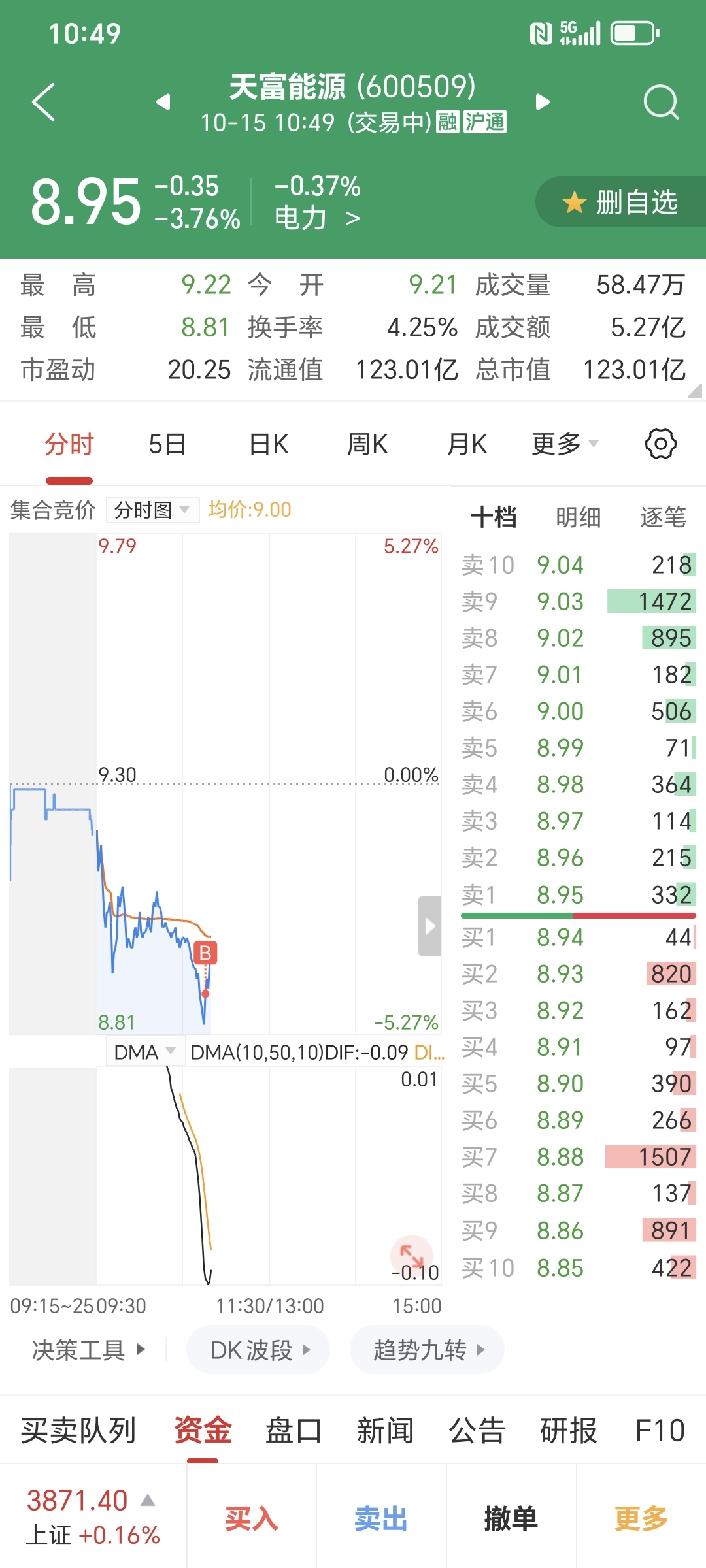 $天富能源(SH600509)$ 别人恐惧我贪婪,9.18一模一样的走势。