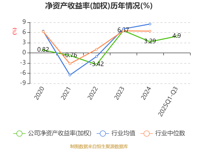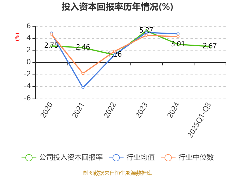 盈利能力方面, 2025年前三季度公司加权平均净资产收益率为4.9%,同比下降1.54个百分点。公司2025年前三季度投入资本回报率为2.67%,较上年同期下降1.4个百分点。