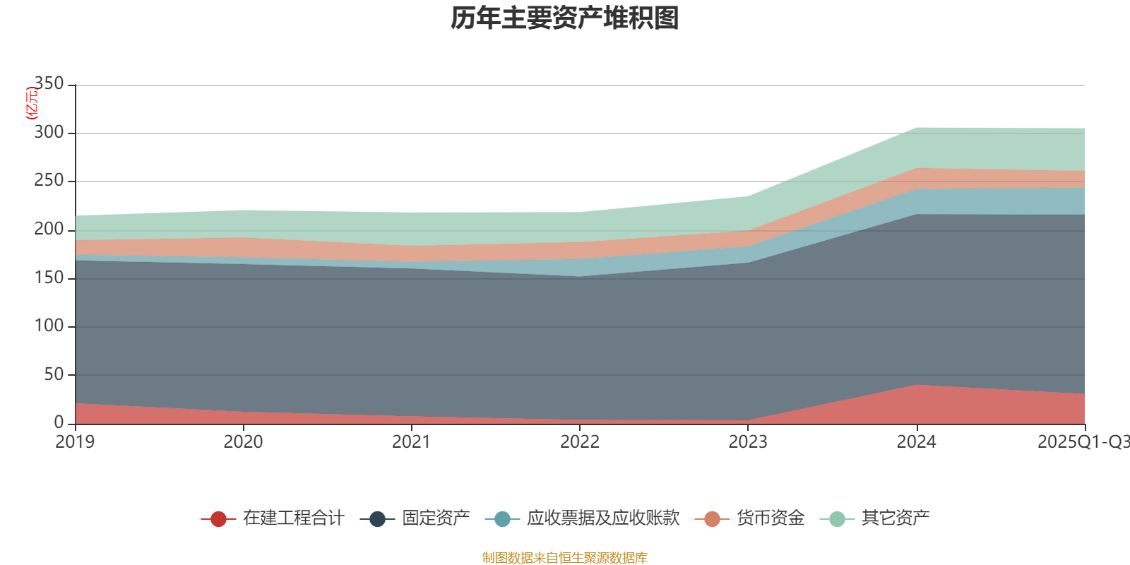 资产重大变化方面,截至2025年三季度末,公司固定资产较上年末增加5.12%,占公司总资产比重上升3.08个百分点;在建工程合计较上年末减少23.46%,占公司总资产比重下降3.07个百分点;货币资金较上年末减少20.95%,占公司总资产比重下降1.48个百分点;合同资产较上年末增加41.62%,占公司总资产比重上升0.89个百分点。