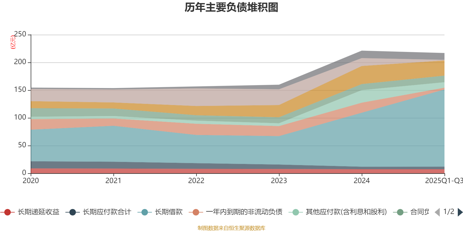 负债重大变化方面,截至2025年三季度末,公司长期借款较上年末增加43.07%,占公司总资产比重上升13.82个百分点;一年内到期的非流动负债较上年末减少82.72%,占公司总资产比重下降4.92个百分点;短期借款较上年末减少92.24%,占公司总资产比重下降4.32个百分点;其他应付款(含利息和股利)较上年末减少55.88%,占公司总资产比重下降4.13个百分点。