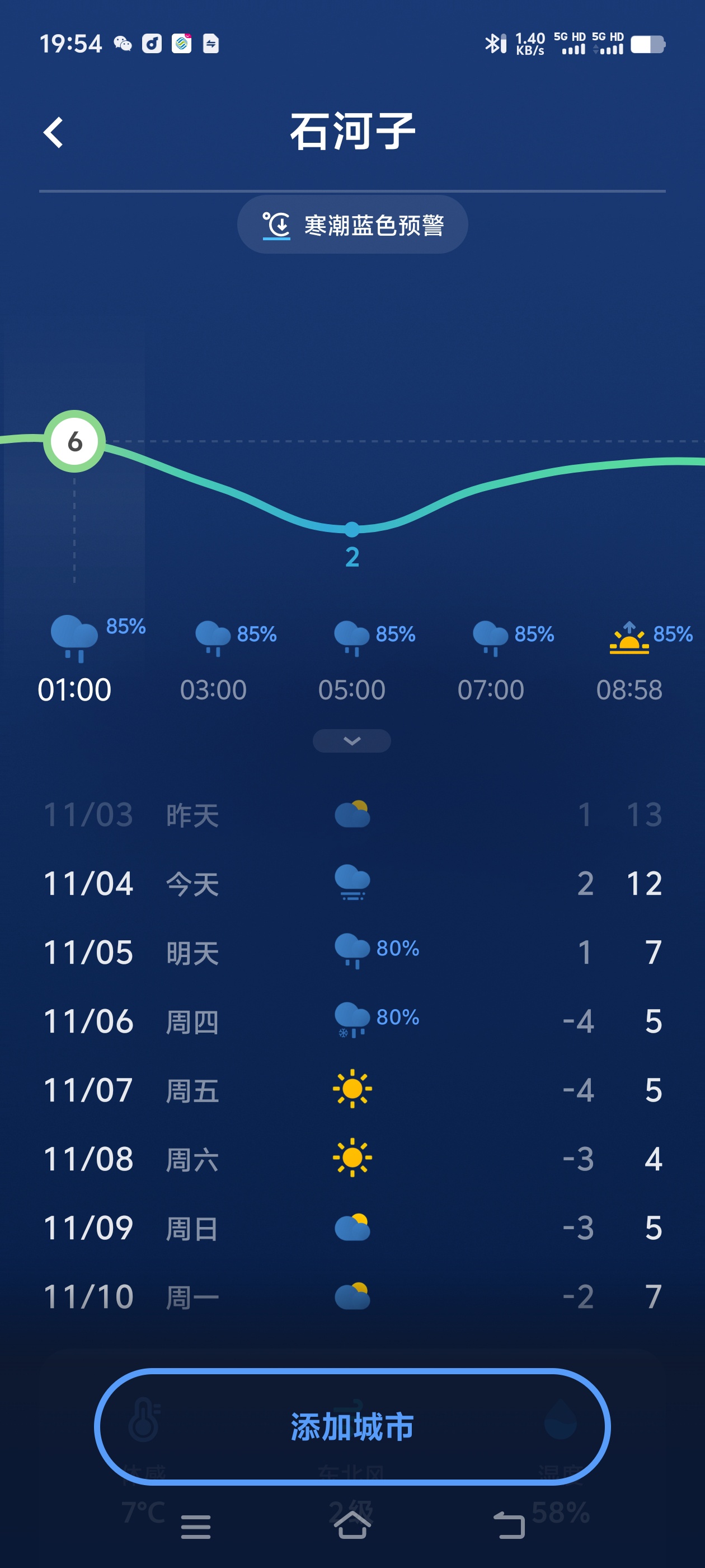 石河子降温了