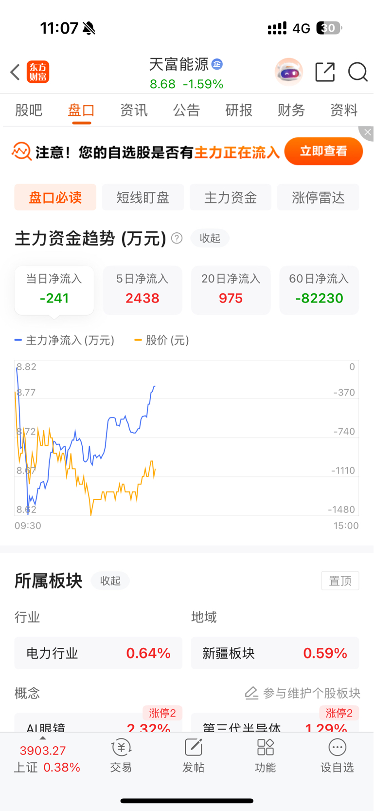 $天富能源(SH600509)$ 卖单也能做成主力流入?