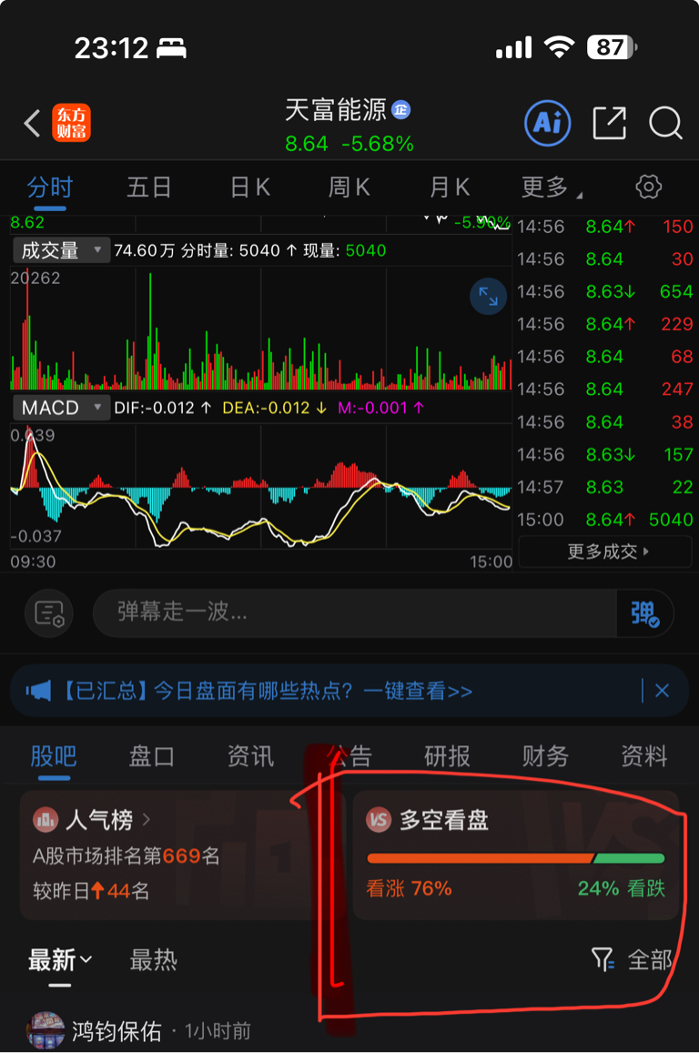$天富能源(SH600509)$ 看涨的76% 能不跌吗?都是小散群里看涨