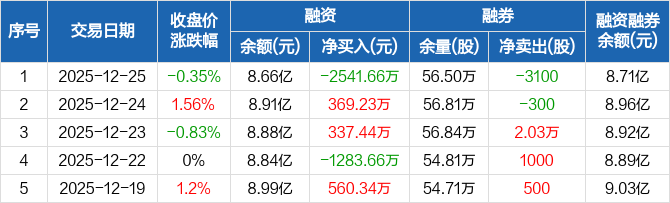 天富能源:融资净偿还2541.66万元,融资余额8.66亿元(12-25)