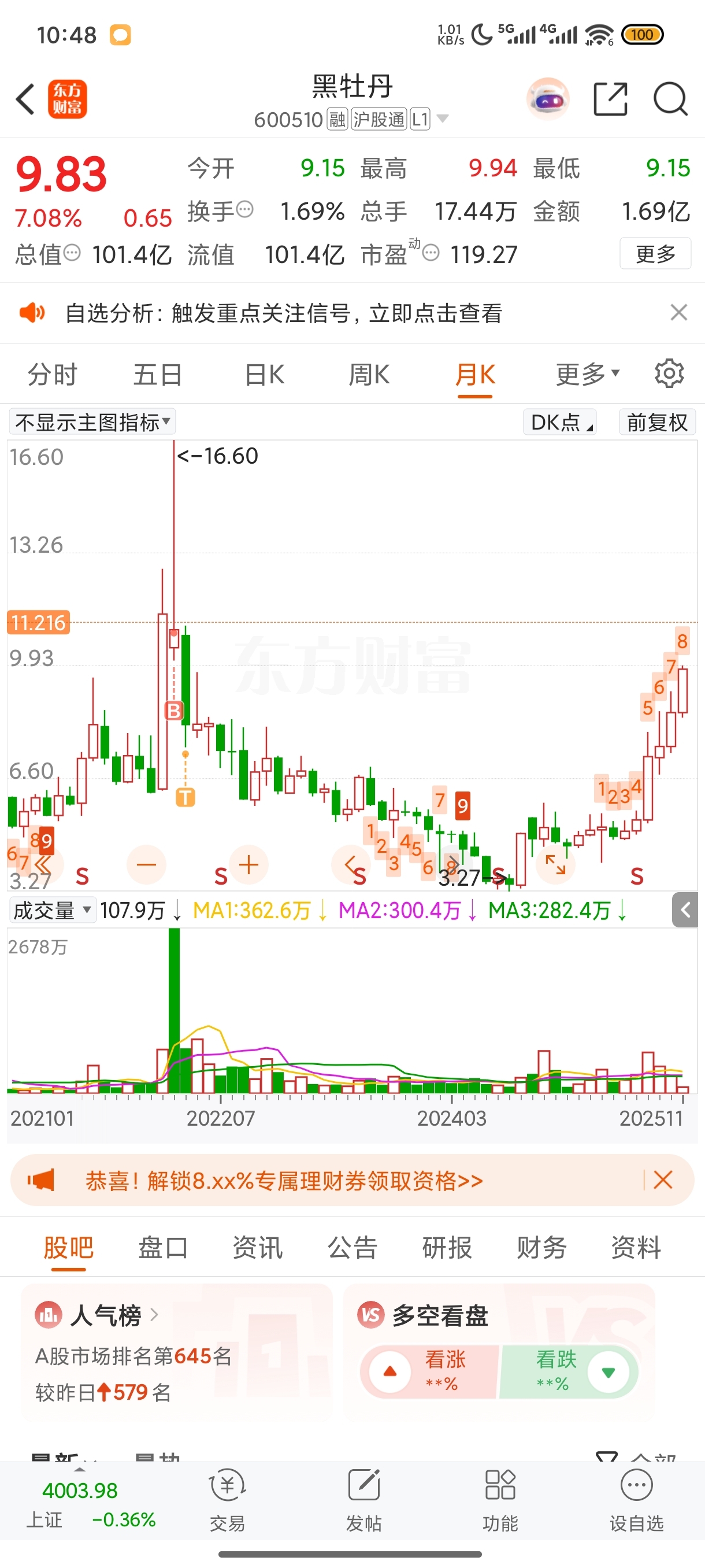 $黑牡丹(SH600510)$ 3年了,让我解套了吗?看我不砸死主力