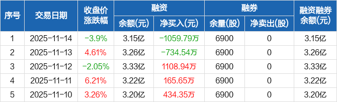 黑牡丹:融资净偿还1059.79万元,融资余额3.15亿元(11-14)