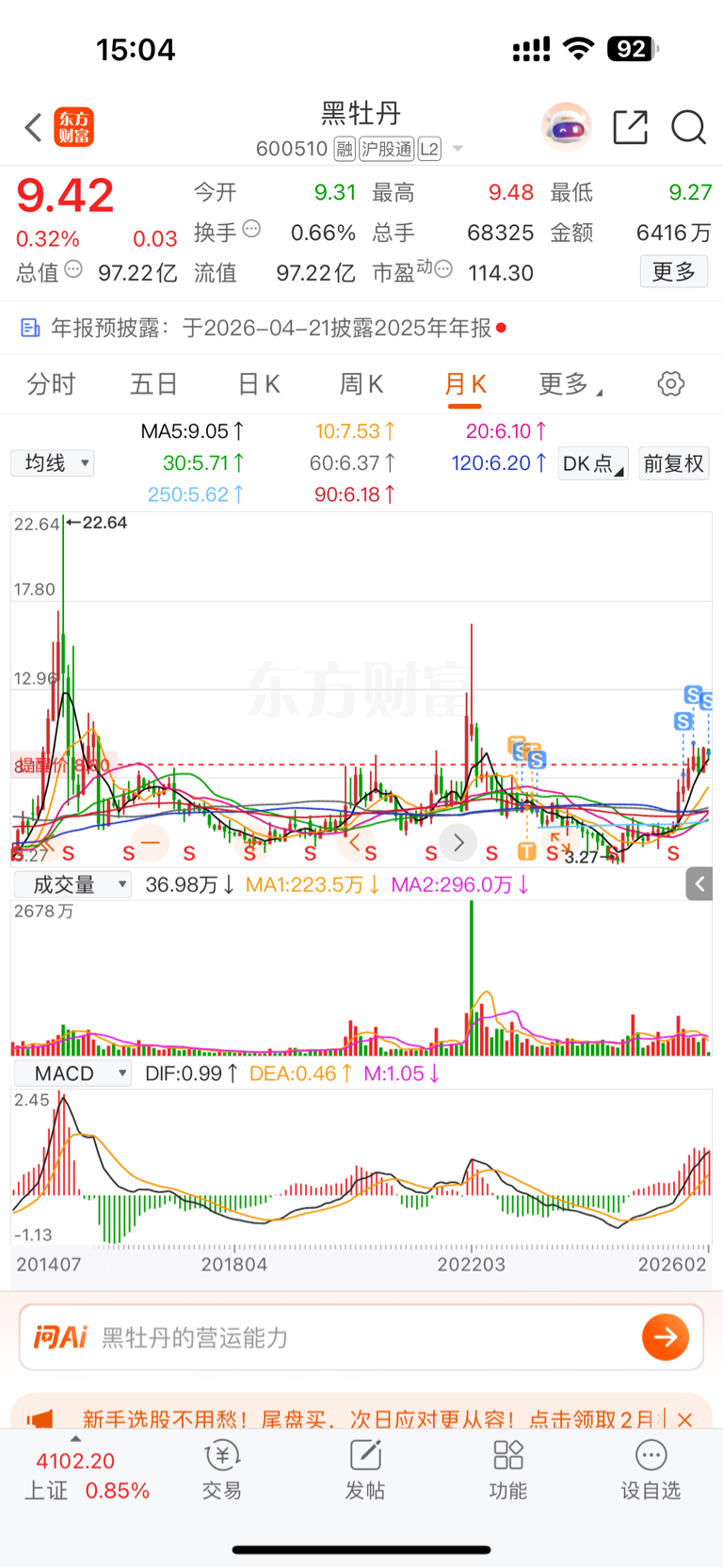 $黑牡丹(SH600510)$ 清仓了,我不想卖的,但是车子要交首付了,希望能继续涨吧