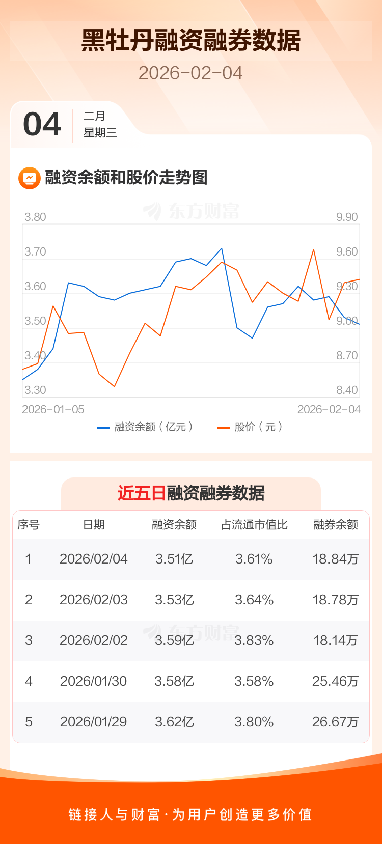 交易所最新数据显示,黑牡丹于2026年2月4日获融资买入707.99万元,融资偿还917.38万元,当日融资净偿还209.38万元。目前,该股融资余额3.51亿,占流通市值比例为3.61%。