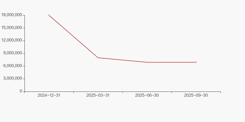 截至2025年9月30日,公司最新总股本为7.55亿股,其中流通股本为5.53亿股。户均持有流通股数量由上期的1.17万股下降至1.12万股,户均流通市值31.92万元。