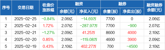 腾达建设:融资净偿还14.69万元,融资余额2.06亿元(02-25)