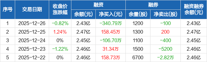 腾达建设:融资净偿还340.79万元,融资余额2.43亿元(12-26)