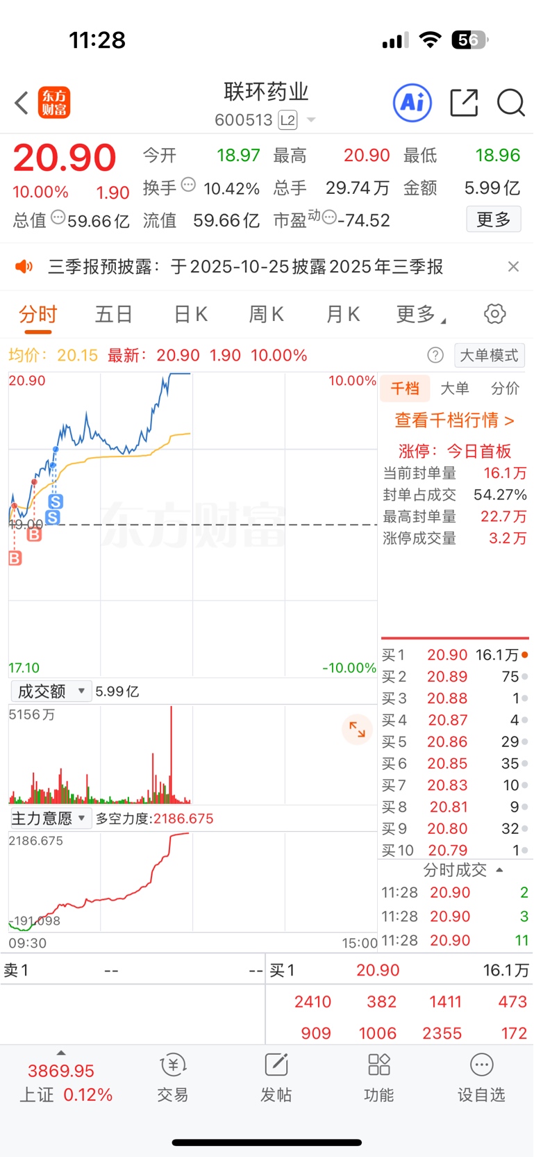 $联环药业(SH600513)$ 从31等到17,实属不易,现在大盘已经进入高低切,风格切换的关键时期。联环药业周月日均已在技术指标上调整到位,糖尿病新药已进入三期随访阶段,上市概率一半一半。 我愿意赌一把